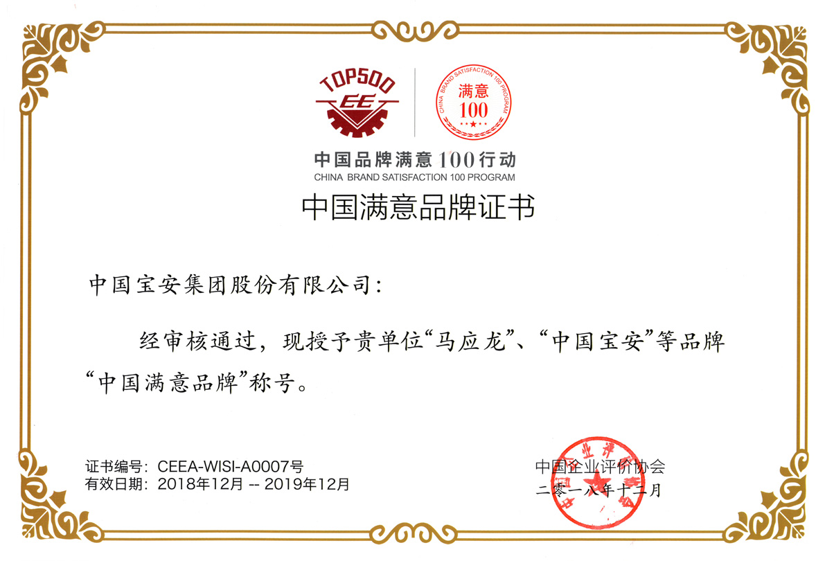 “中國寶安”、“馬應(yīng)龍”榮獲“中國滿意品牌”