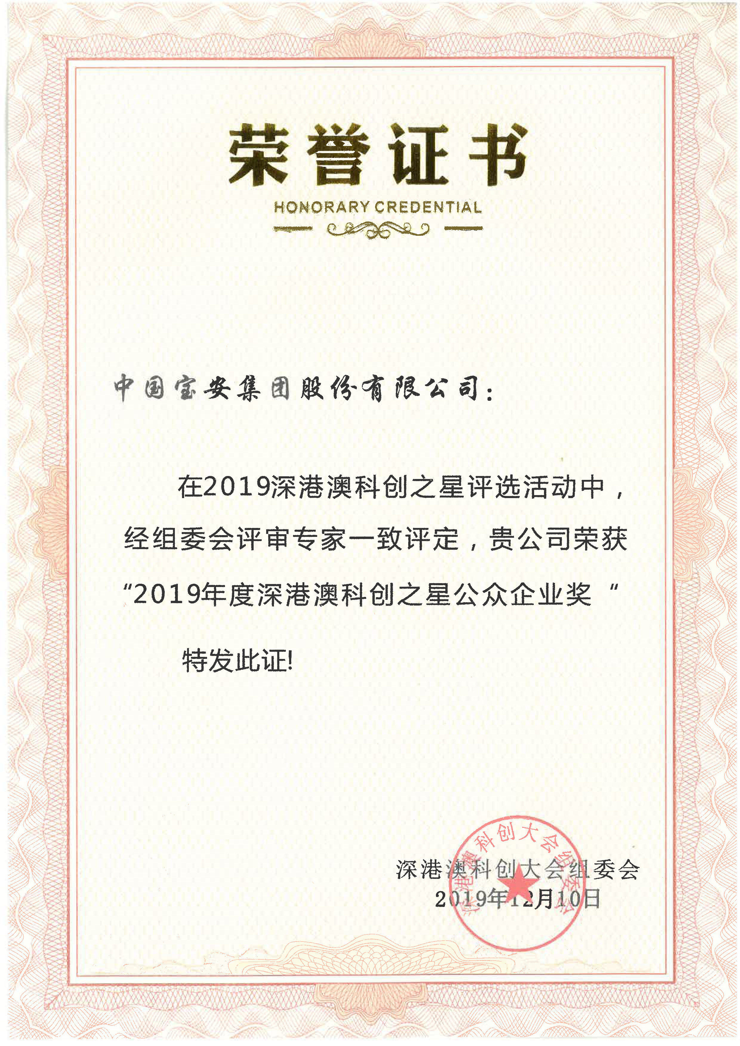 1210日,2019年深港澳科創(chuàng)大會暨科創(chuàng)之星頒獎典禮在深圳召開,集團(tuán)榮獲科創(chuàng)之星公眾企業(yè)獎。