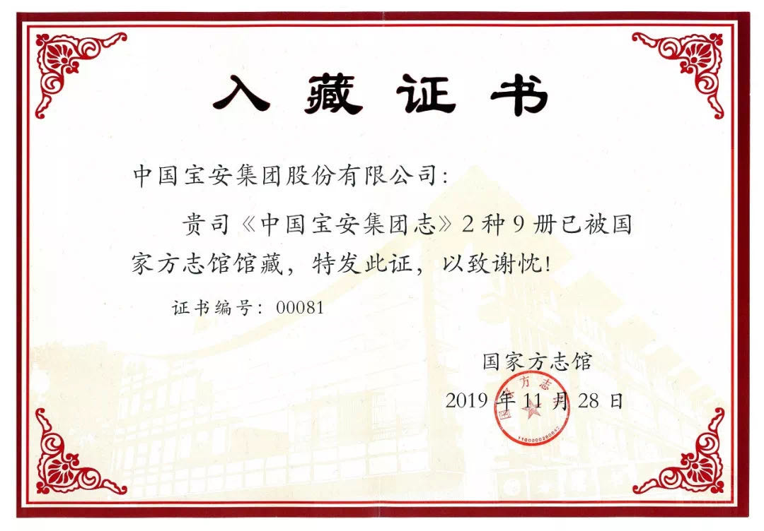 《中國(guó)寶安集團(tuán)志》記錄了集團(tuán)從1983年到201330年的發(fā)展歷程,集團(tuán)志被國(guó)家級(jí)館收藏,也意味著集團(tuán)30年實(shí)踐中蘊(yùn)藏的豐富精神財(cái)富和集團(tuán)歷史被國(guó)家永久記錄。